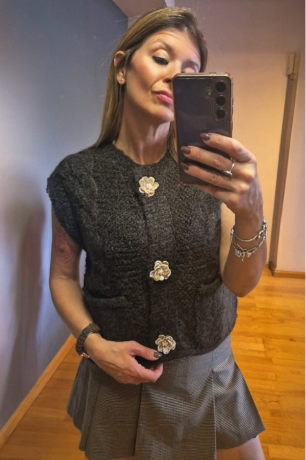 Pétalo es una prenda que florece desde lo sutil: un chaleco de lana de textura suave, envolvente, diseñado para abrazar el cuerpo de manera natural, de corte recto , que se adapta a cualquier silueta.