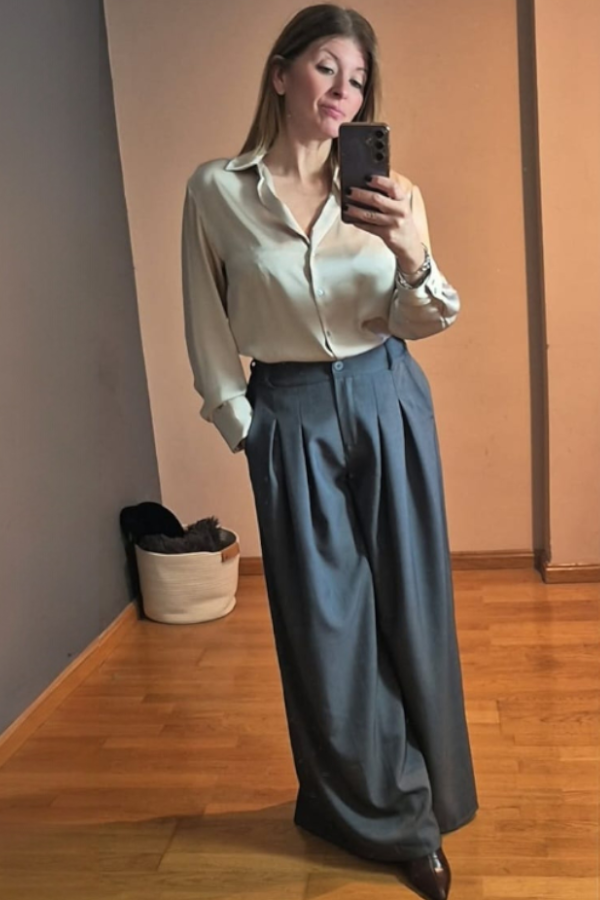 Horizonte es un palazzo de silueta amplia que fluye con la suavidad el movimiento. Su tela ligera y con caída natural crea líneas puras que se deslizan al caminar, evocando calma y libertad. La cintura con goma en la parte posterior aporta comodidad y adaptabilidad haciendo de Horizonte una prenda talla única que se ajusta con elegancia a distintas figuras.
